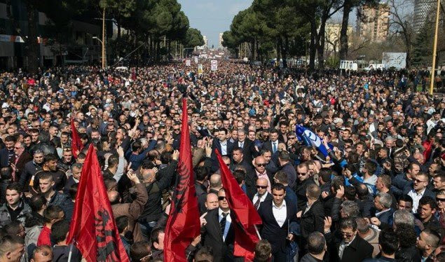 Protestuesit e ftuar nga partitë opozitare në Shqipëri kanë nisur marshimin e tyre në bulevardin “Dëshmorët e Kombit” në Tiranë ku do të vendosen përpara Kryeministrisë.