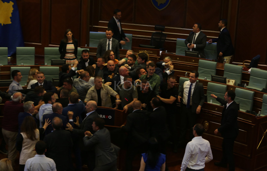 Më pas, Bislimi e ka gjuajtur Lushtakun me shishe, veprim pas të cilit deputetë e ministra janë përfshirë në përleshje fizike.