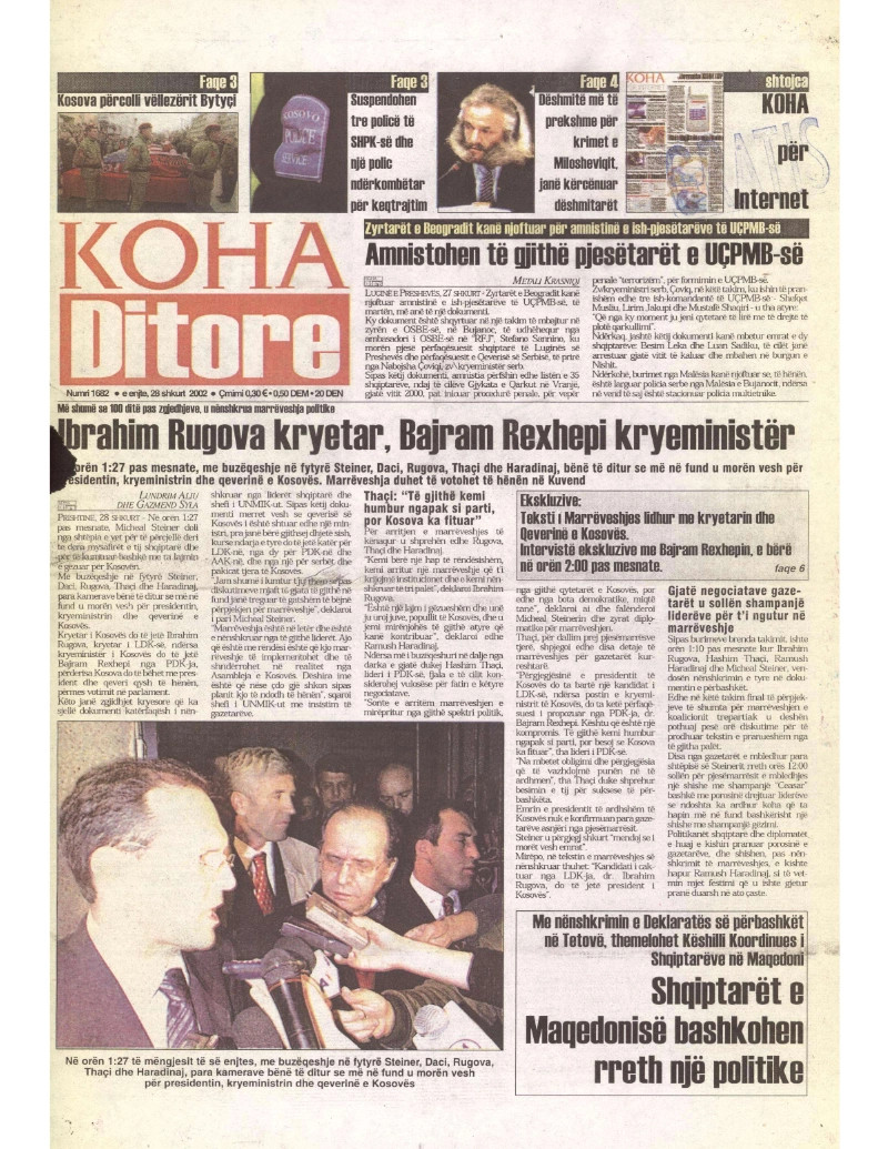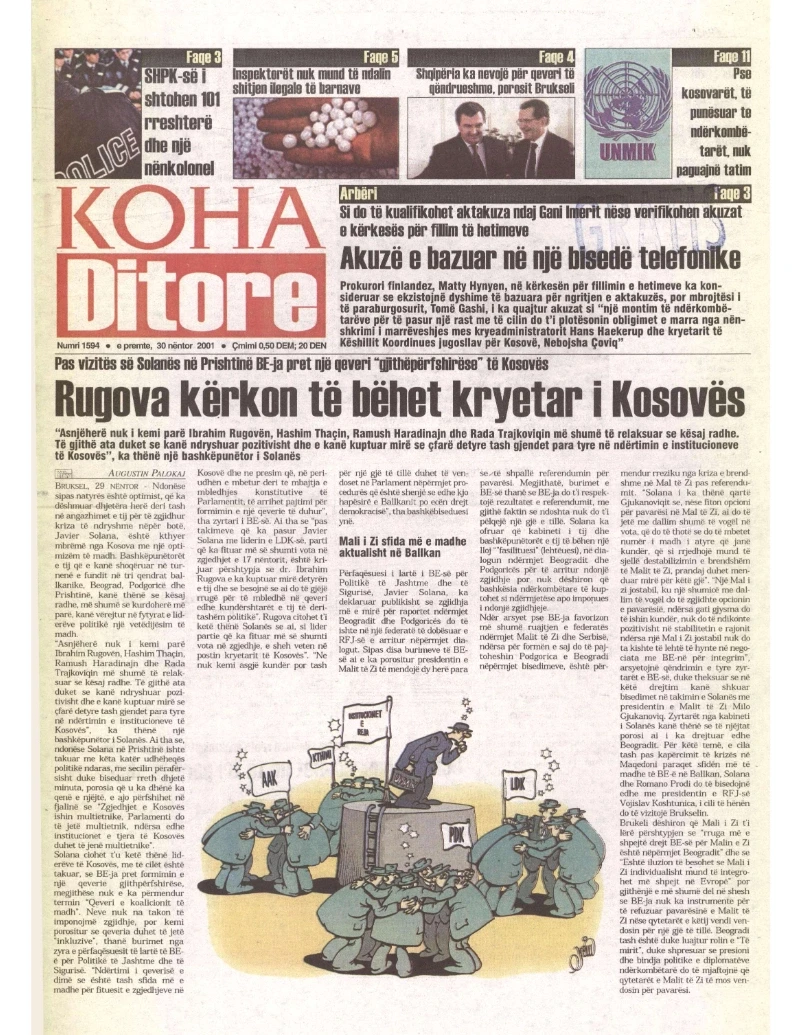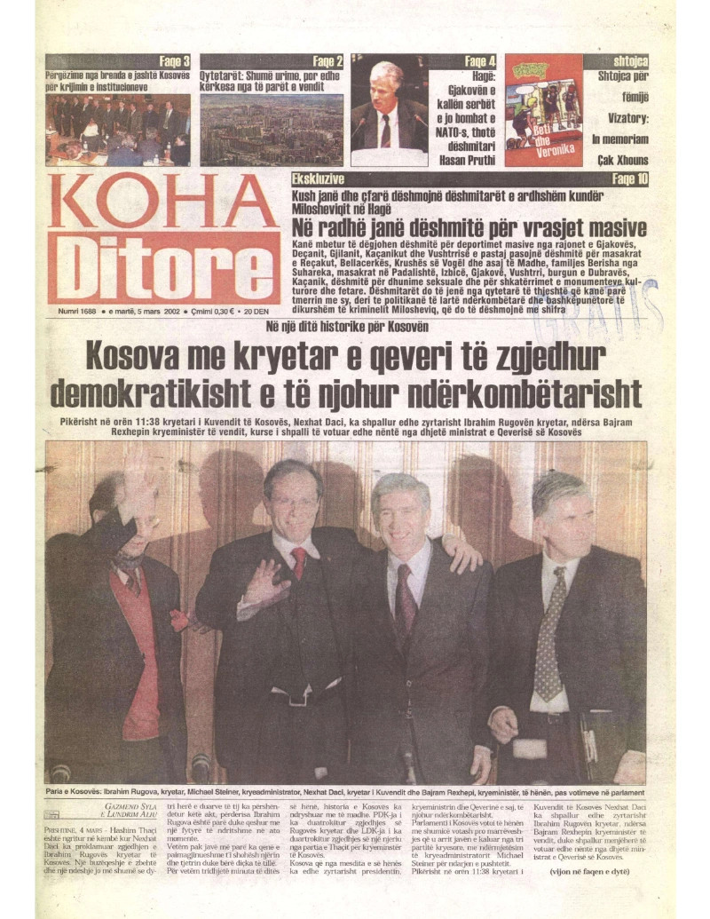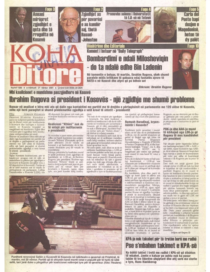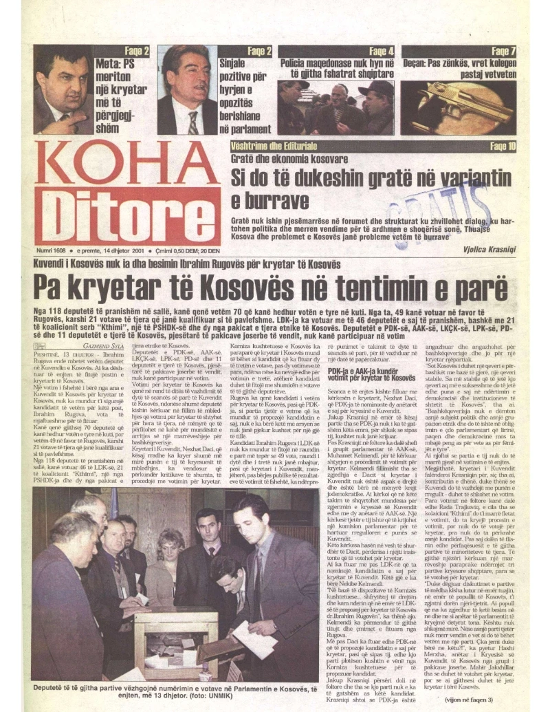Pas zgjedhjeve të para parlamentare që u mbajtën në nëntor të vitit 2001, kryetari i atëhershëm i LDK -së, Ibrahim Rugova, u zgjodh president në raundin e tretë të votimit, më 4 mars 2002.