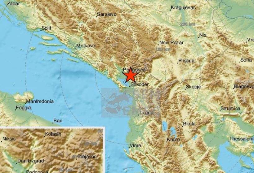 Tërmeti është ndier edhe në Malin e Zi.