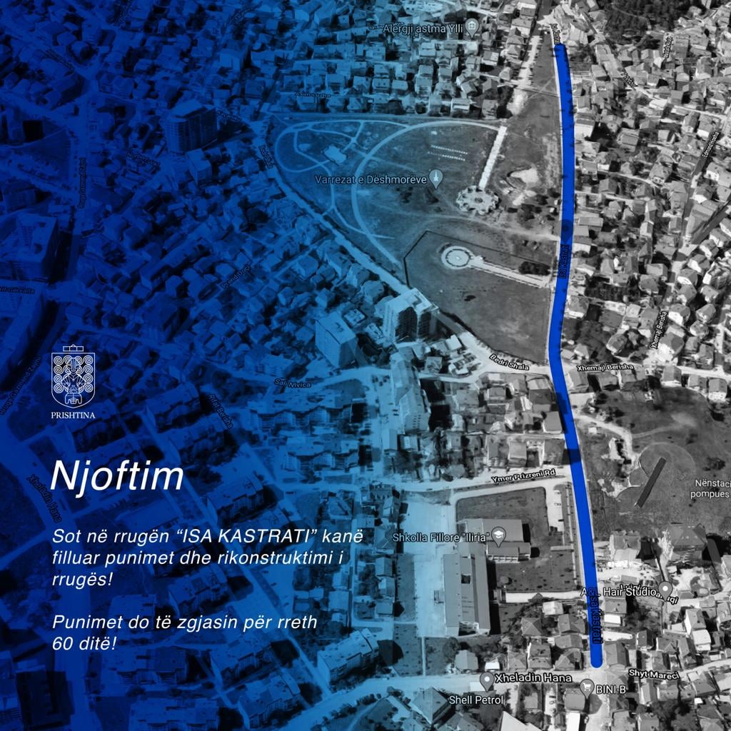 Kryetari i Komunës së Prishtinës, Shpend Ahmeti ka njoftuar se nga sot kanë filluar punimet në rrugën “Isa Kastrati” në drejtim të udhëkryqit të rrugës “24 Maji”.