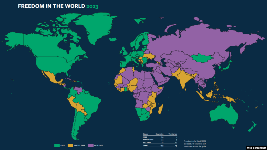 Hendeku midis numrit të vendeve që shënuan përmirësime të përgjithshme të të drejtave politike dhe lirive civile dhe atyre që regjistruan rënie të përgjithshme gjatë vitit 2022 ishte më i ngushti në 17 vitet e përkeqësimit global të shkallës së lirisë, thuhet në raportin e 50 më radhë të Freedom House mbi liritë në botë.