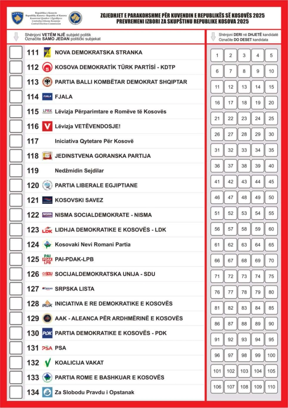 Komisioni Qendror i Zgjedhjeve (KQZ) ka miratuar dizajnin dhe përmbajtjen e fletëvotimeve për zgjedhjet për Kuvendin e Republikës së Kosovës që do të mbahen më 28 dhjetor.