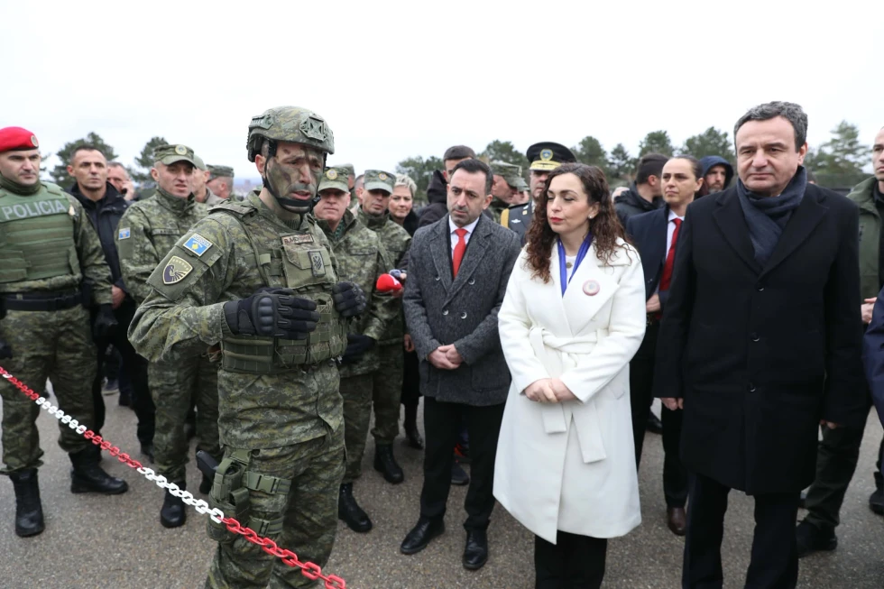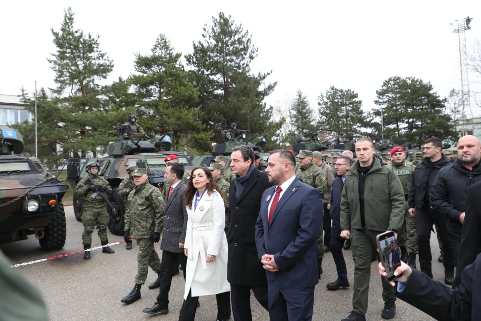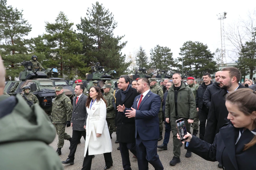 “Mbi 430 milionë euro është investimi në armatim dhe pajisje në këto katër vitet e fundit. Më përpara ushtria jonë ka pasur vetëm automatiku të llojit …dhe revolve, që do të thotë ka qenë më pak e pajisur se Policia e Kosovës. Ndërkaq tani është e pajisur me teknologji moderne dhe sa vjen e shtohet, meqenëse tash kemi dyfishim të çizmeve në tokë të ushtarëve tanë dhe gjithashtu të syve në qiell për shkak se e kemi pajisur ushtrinë me drona, e do ta kemi së shpejti edhe fabrikën e municionit dhe prodhimit të dronëve “Made in Kosova””, tha Kurti.