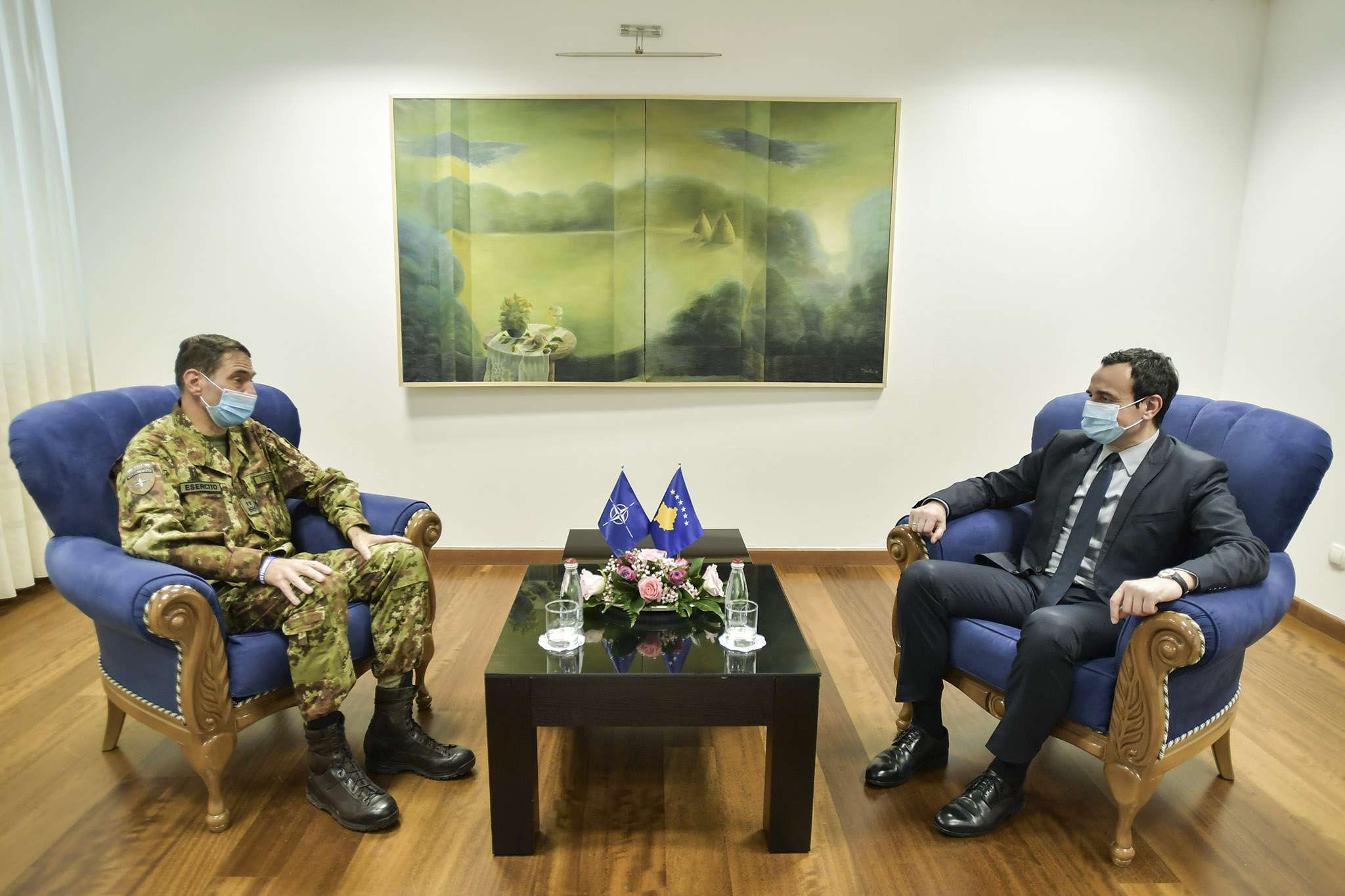 Kryeministri i Kosovës, Albin Kurti, i shoqëruar nga ministri i Punëve të Brendshme, Xhelal Sveçla, ka pritur mbrëmë në takim lamtumirës komandantin e Forcave paqeruajtëse të NATO-s në Kosovë (KFOR), Gjeneralmajori Franco Federici.