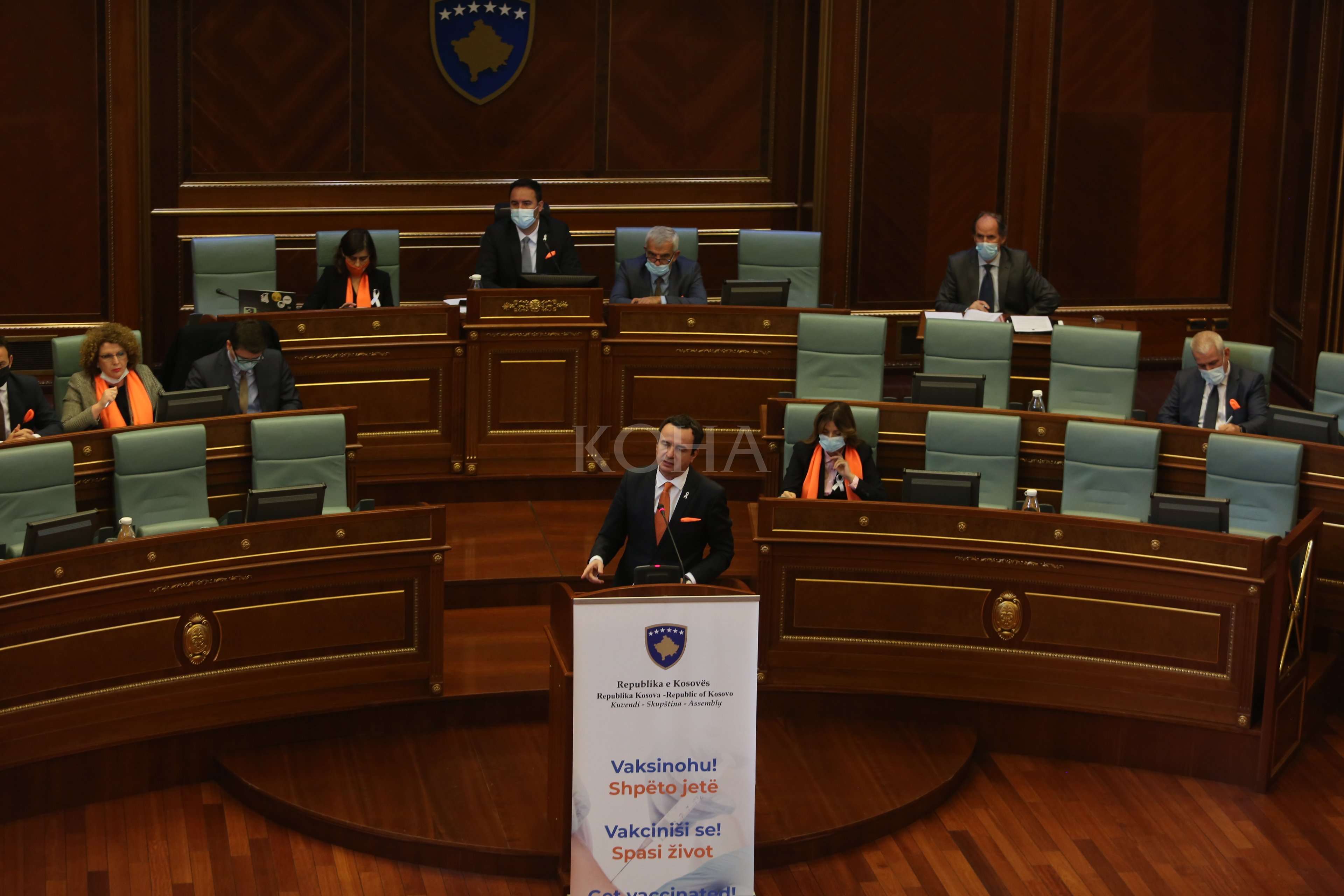 “Kjo është edhe arsyeja që përmes shenjave dalluese që i kemi sot, si deputetë tregojmë kështu që edhe Parlamenti i Kosovës bëhet pjesë e kësaj fushate globale për ta ngritur vetëdijesimin qytetar por para se gjithash vetëdijesimin institucional për luftën kundër dhunës që bëhet ndaj grave dhe vajzave në botë”, tha ai.