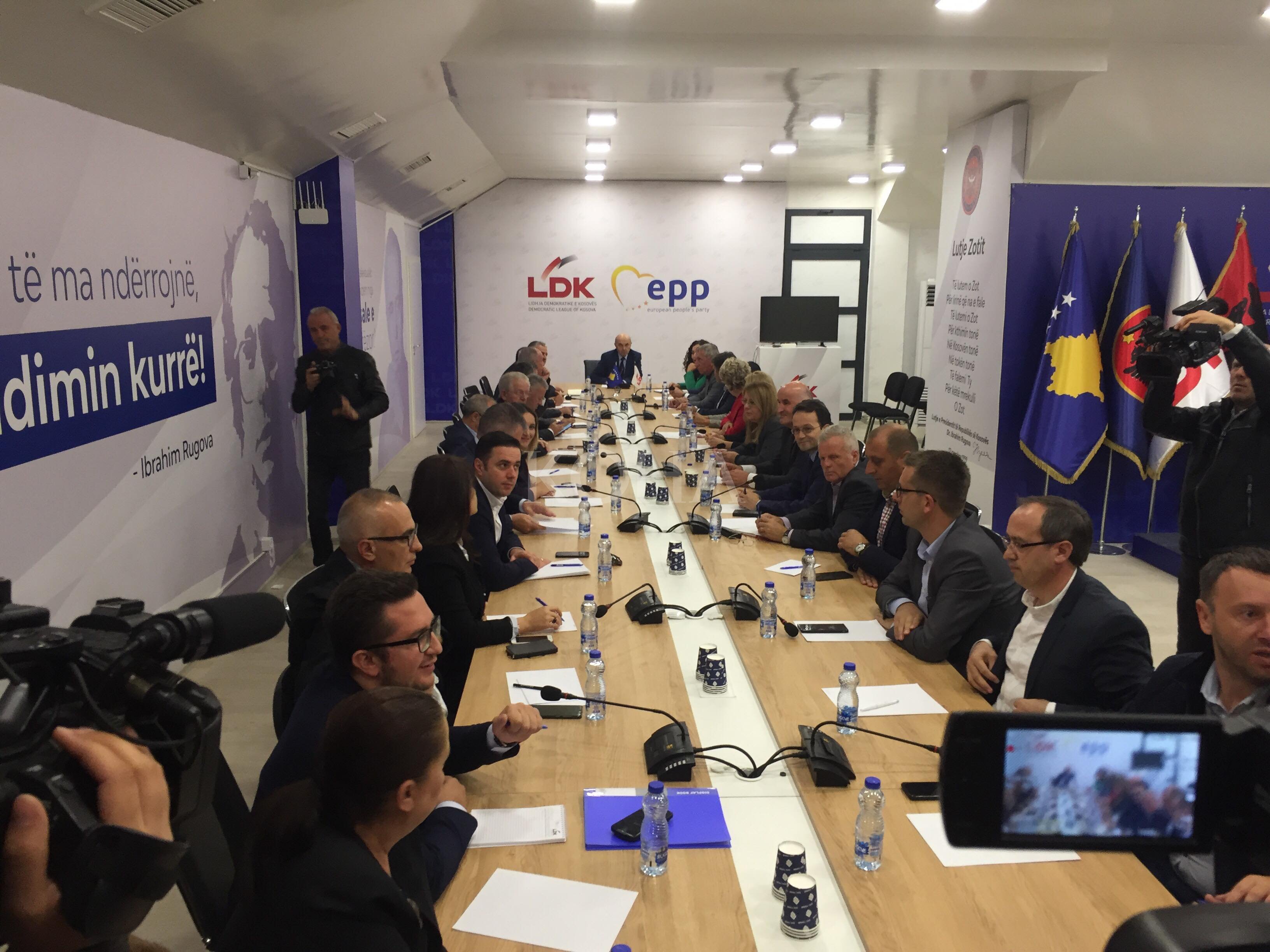 Mbledhja e kryesisë së LDK-së po mbahet një ditë pas takimit që zhvilluan kryetari i Vetëvendosjes Albin Kurti dhe kreu i LDK-së Isa Mustafa.