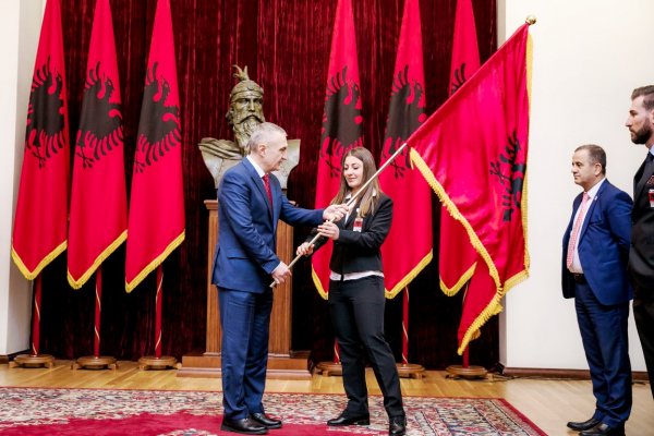 Tiranë, 2 shkurt - Presidenti i Republikës, Ilir Meta i dorëzoi sot Flamurin Kombëtar delegacionit sportiv shqiptar që do përfaqësojë vendin tonë në Lojërat Olimpike Dimërore “Pyeongchang 2018”, të cilat do të zhvillohen në Korenë e Jugut nga data 9 deri më 25 shkurt.