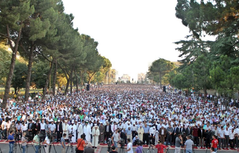 Sot në mëngjes qindra besimtarë në të gjithë vendin kanë falur namazin. Në Tiranë besimtarët u falën në Bulevard, ndërsa Myftiu Ylli Gurra dha mesazhe vëllazërie.