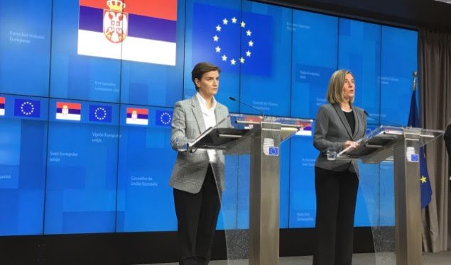 Ajo gjatë një konference për media me kryeministren e Serbisë Ana Brnabiq në Bruksel, deklaroi se angazhimi i Serbisë për normalizimin e marrëdhënieve me Kosovën është një nga elementët kryesorë të progresit në negociatat e anëtarësimit në BE.