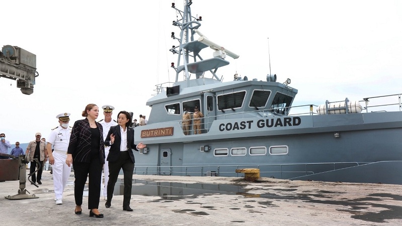 “Me ambasadoren e Shteteve të Bashkuara të Amerikës, Yuri Kim, zhvilluam një vizitë në Bazën Detare të Pashalimanit, për të cilën bashkë me Aleancën po vlerësojmë mundësinë e modernizimit dhe transformimit në një projekt model të NATO-s. Me pas, një udhëtim i shkurtër në Gjirin e Vlorës u mundësua nga anija Butrinti P-134, e cila ka marrë pjesë disa herë në operacionin “Sea Guardian” të NATO-s në detin Egje, duke shpëtuar me qindra emigrantë. Me aleatin tonë strategjik, Shtetet e Bashkuara të Amerikës, ndajmë jo vetëm misione të rëndësishme në teatrot operacionalë, por edhe qëllimin e përbashkët për modernizimin e Forcave tona të Armatosura”, deklaron ministrja e Mbrojtjes, Olta Xhaçka.