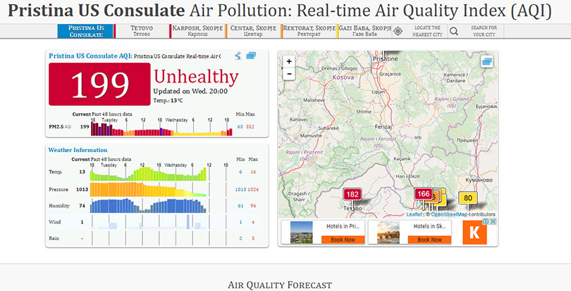 Përveç Kosovës, ndotja është alarmante edhe në Maqedoninë fqinje. Pak ditë më parë, niveli i ndotjes së ajrit i regjistruar mbi kryeqytetin Shkup ishte tri herë më i lartë nga ai i lejuar.