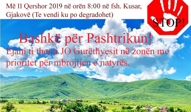 Banorët e komunës së Gjakovës nesër duke filluar nga ora 08:00 do të protestojnë në fshatin Kusar të Gjakovës. Përmes kësaj proteste ata po kërkojnë që të ndalin gurthyesit në Kusar, rrezë Bjeshkëve të Pashtrikut, e cila është zonë me prioritet për mbrojtje të natyrës me planin zhvillimor të Komunës së Gjakovës.