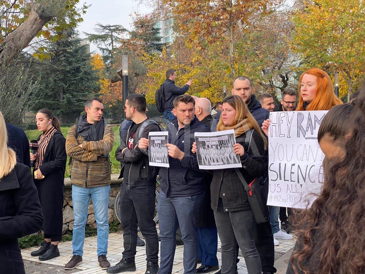 Letër lexuesit — pse po kërkojmë mbështetjen tuaj KontribuoGazetarë dhe aktivistë janë bashkuar në një protestë rreth 30 minuta para se në Kuvend të fillojë seanca plenare.