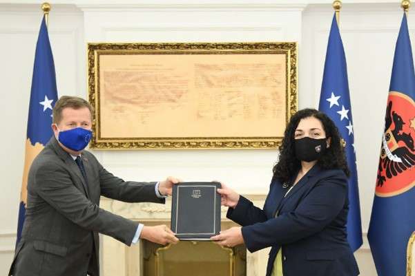 Presidentja e Kosovës, Vjosa Osmani ka pranuar “Raportin e Komisionit Evropian për Kosovën” nga shefi i Zyrës së Bashkimit Evropian në Kosovë, Tomáš Szunyog.