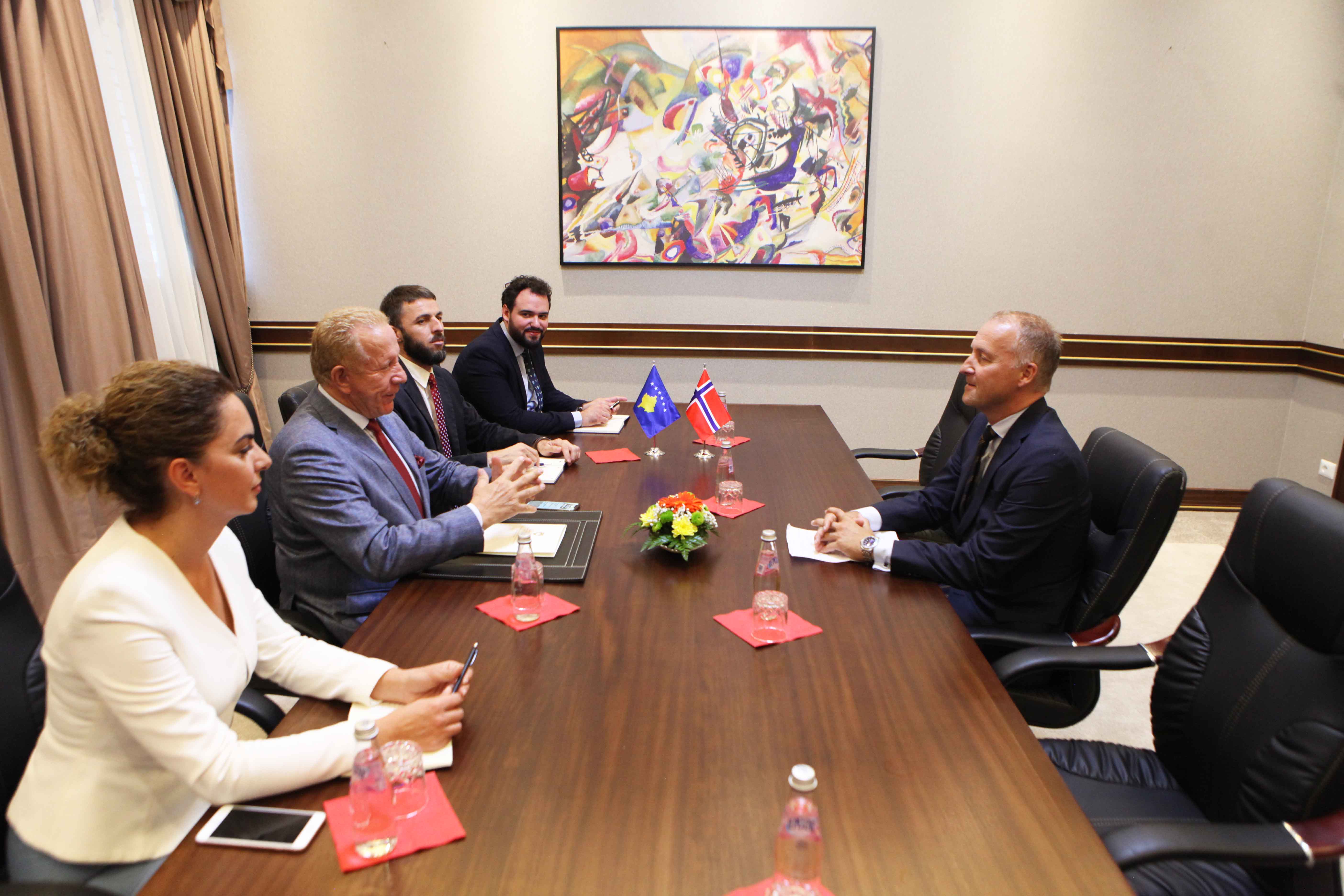 Prishtinë, 11 shtator –Ministri në detyrë i Punëve të Jashtme i Republikës së Kosovës, Behgjet Pacolli, ka pritur sot në një takim kortezie ambasadorin e ri të Norvegjisë në Republikën e Kosovës, Jens Erik Grondahl, të cilit i uroi mirëseardhjen në Kosovë.