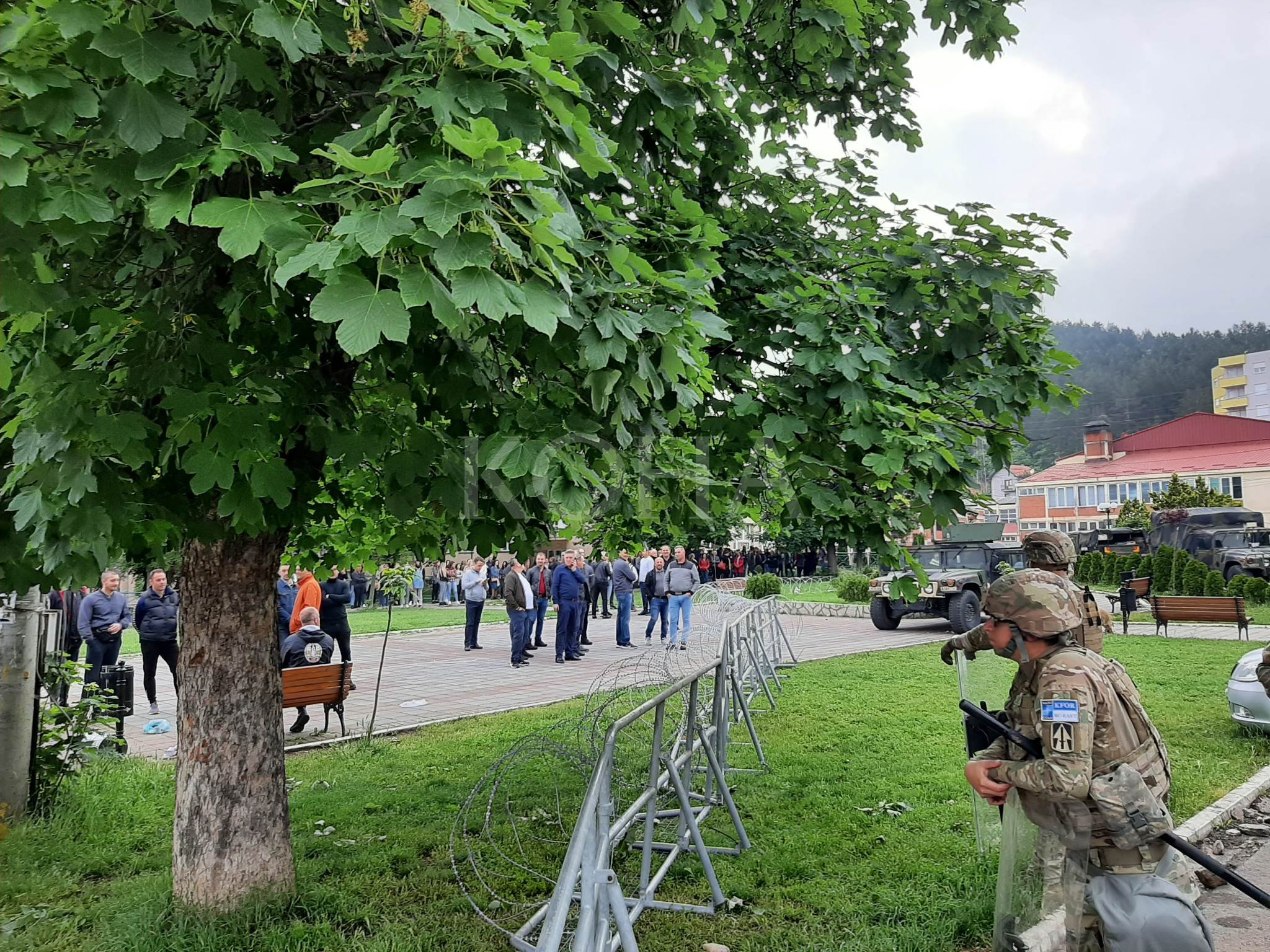 Në një komunikatë drejtuar mediave, Policia tha se në Leposaviq, Zubin-Potok dhe në Zveçan, po zhvillohen protestat, derisa para objektit të komunës së Zveçanit është tentuar kalimi i kordonit të sigurisë, për t'u futur me dhunë në objekt.