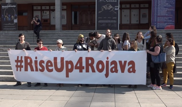 Sot në Prishtinë është mbajtur një protestë në shenjë solidariteti me popullin kurd, duke iu bashkangjitur kështu protestës #RiseUp4Rojava, që është mbajtur në disa qendra të botës.