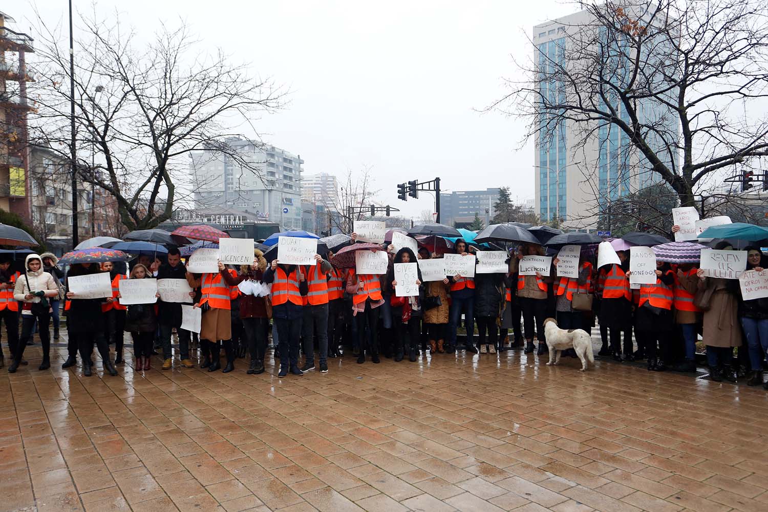 “Duart larg nga Monego”, “Na ktheni vendet e punës”, “Na riktheni licencën”, “Atë që nuk na ofroi shteti na ofroi Monego” ishin disa prej parullave që punëtorët mbajtën në duar e që të njëjtat ishin përkthyer edhe në anglisht.