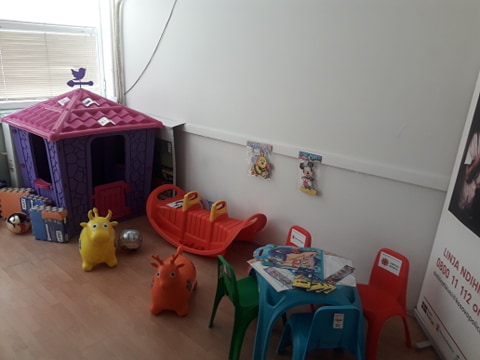 Dhoma është e pajisur me lodra dhe materiale të ndryshme për fëmijë për ta bërë këtë dhomë më miqësore për fëmijë dhe për të ngritur nivelin e cilësisë dhe efikasitetit të punës së zyrtarëve nga Qendrat për Punë Sociale.