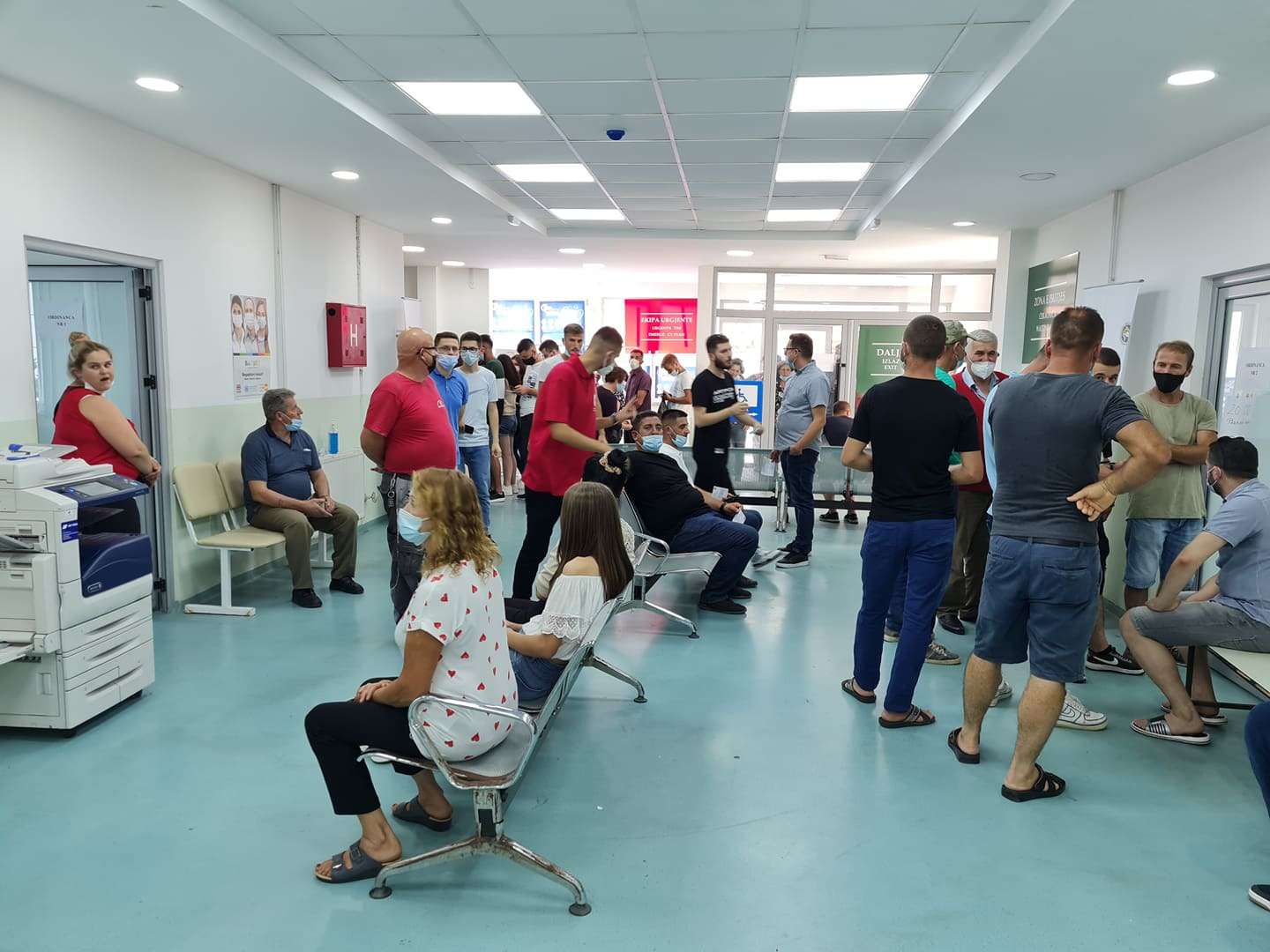 Qytetarët, shumica pa maska, vërtiten nëpër korridor dhe kanë pasur vështirësi në gjetjen e vendit të tyre.