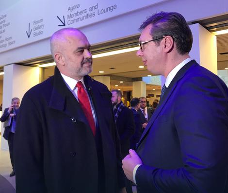 Kryeministri i Shqipërisë Edi Rama ka thënë sot në Davos se shpreson se, edhe pse Serbia është para Shqipërisë në procesin e anëtarësimit në BE, dy vendet do të mund të hynin bashkë në Union me supozimin që Serbia ta njohë Kosovën, transmeton Koha.net.