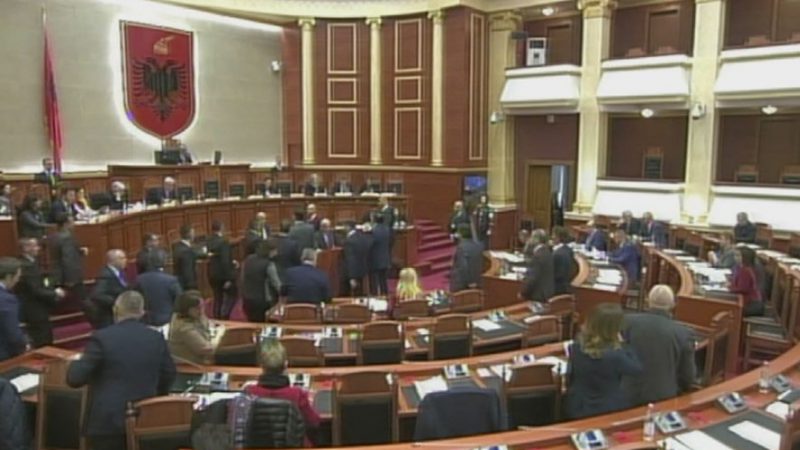 Lulzim Basha dhe grupi i PD nuk e pranuan duke u ngritur në këmbë dhe bllokuar foltoren. Lideri i PD iu drejtua Ruçi me fjalët ‘Hajdut dhe kriminal’, ndërsa kryetari i Kuvendit iu përgjigj: Halabak, mos prek punonjësit e gardës’.