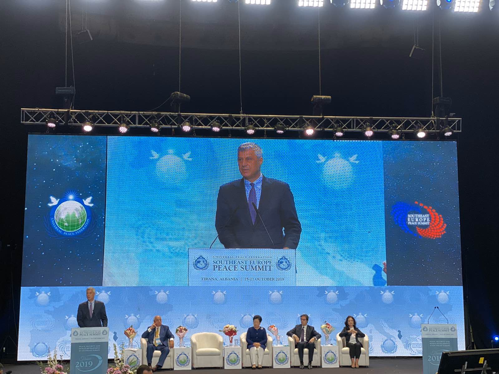 Presidenti i Kosovës, Hashim Thaçi, ka marrë pjesë sot në Samitin për Paqe të Evropës Juglindore 2019 në Tiranë, i cili organizohet nga Federata Universale e Paqes.