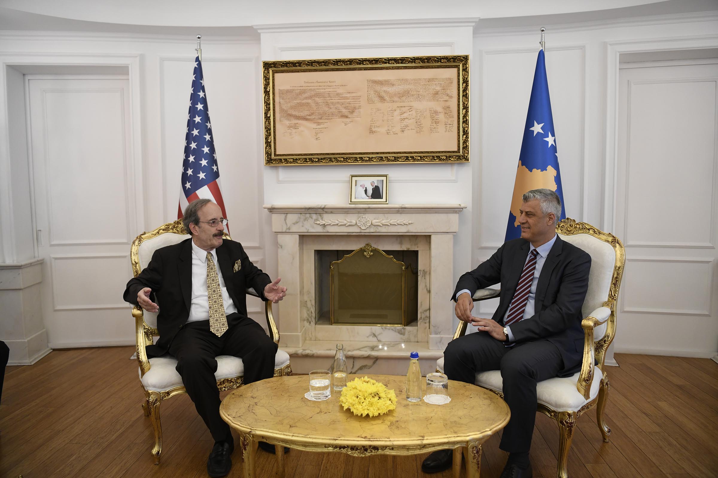 “Ju jam mirënjohës për angazhimin tuaj personal, prej dekadash, për Kosovën dhe popullin shqiptar në përgjithësi. Është impresive kur e kujtojmë se ku ishim në vitin ‘96 dhe kur e shohim ku jemi sot”, u shpreh Thaçi dhe shtoi se “për këtë jemi mirënjohës përkrahjes së Shteteve të Bashkuara të Amerikës, të gjithë miqve, që na kanë përkrahur gjithë këto vite”.