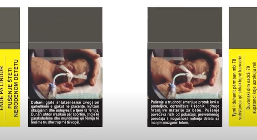 Udhëzimi Administrativ për vërejtje të kombinuara i cili ka hyrë në fuqi në tetor të vitit të kaluar parasheh që nga prilli të gjitha pakot e duhanit që importohen të kenë të vendosura imazhet dhe mesazhet dekurajuese, e që nga tetori i këtij viti të gjitha pakot t’i përmbajnë këto fotografi.