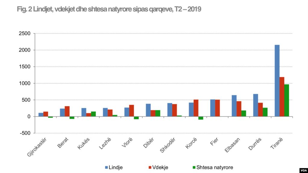 Qarku i Gjirokastrës vijoi të regjistrojë numrin më të ulët të lindjeve me një rënie 10% krahasuar me një vit më parë ndërsa nëntë nga 12 qarqet e Shqipërisë regjistruan rënie të lindjeve në tremujorin e dytë 2019.