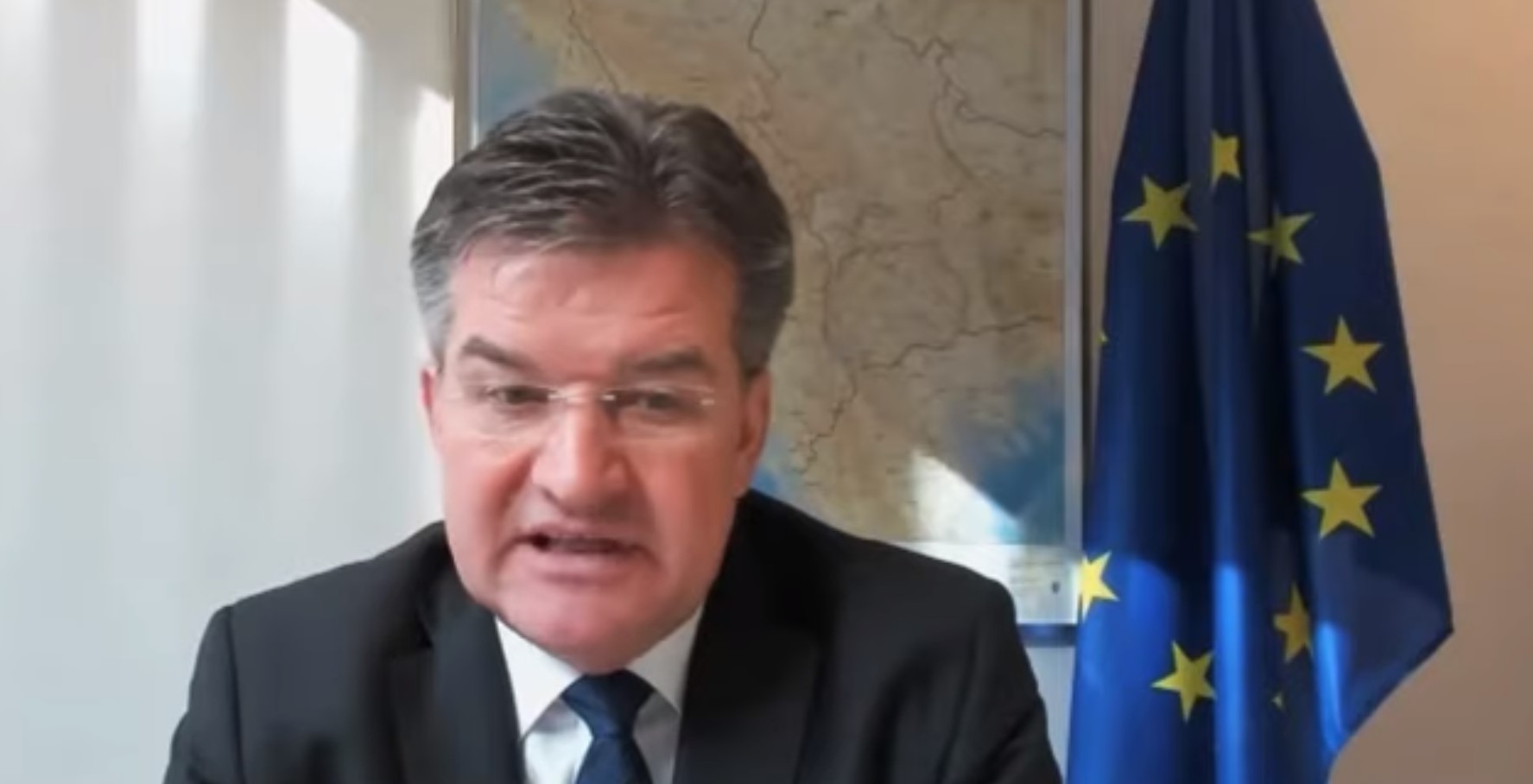 Gjatë një interviste të Lajçakut dhënë European Western Balkans, është parë në prapavijë të emisarit një hartë ku shihet Kosova si pjesë e Serbisë.