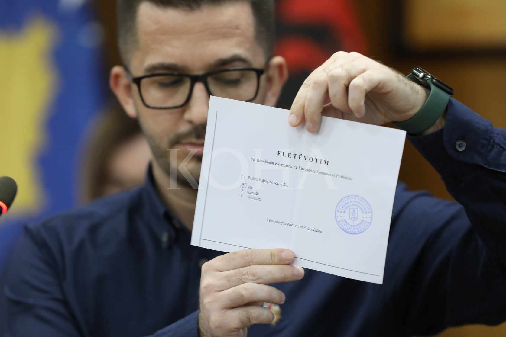 Kuvendi Komunal i Prishtinës në seancën e jashtëzakonshme të mbajtur të martën ka nisur votimin e fshehtë për shkarkimin e kryesuesit Pëllumb Bajçinovci, i cili vjen nga radhët e Lidhjes Demokratike të Kosovës (LDK). Votimi për shkarkimin e tij vjen pas prishjes së koalicionit në mes të Partisë Demokratike të Kosovës dhe LDK-së në kryeqytet. Në sallë janë asamblistët e Vetëvendosjes, PDK-së, AAK-së e AKR-së.