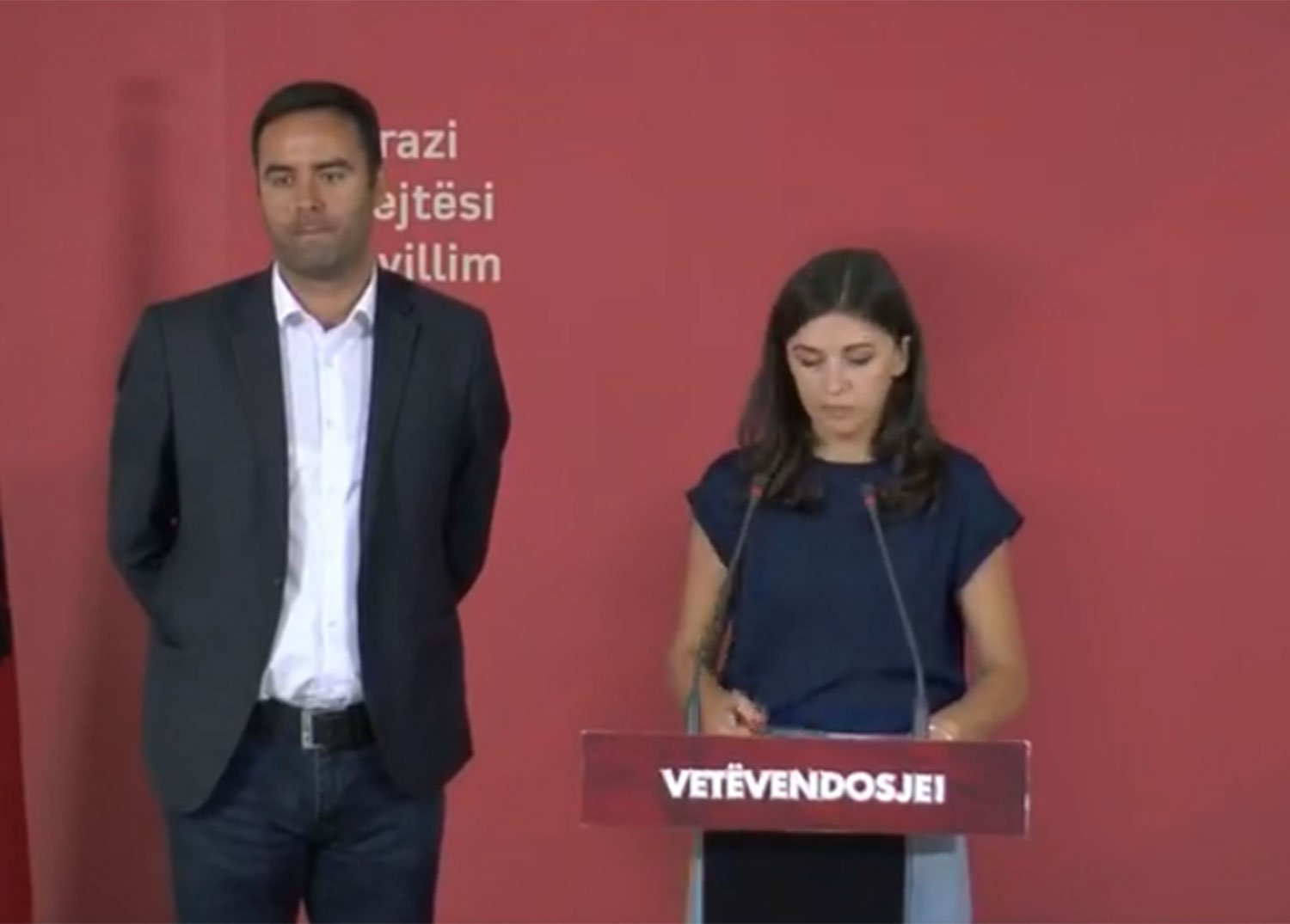 Shefi i Grupit Parlamentar të Vetëvendosjes, Glauk Konjufca bashkë me deputeten nga kjo parti, Albulena Haxhiu, kanë dalë në një konferencë për media për të folur rreth zhvillimeve të fundit në Prokurori.