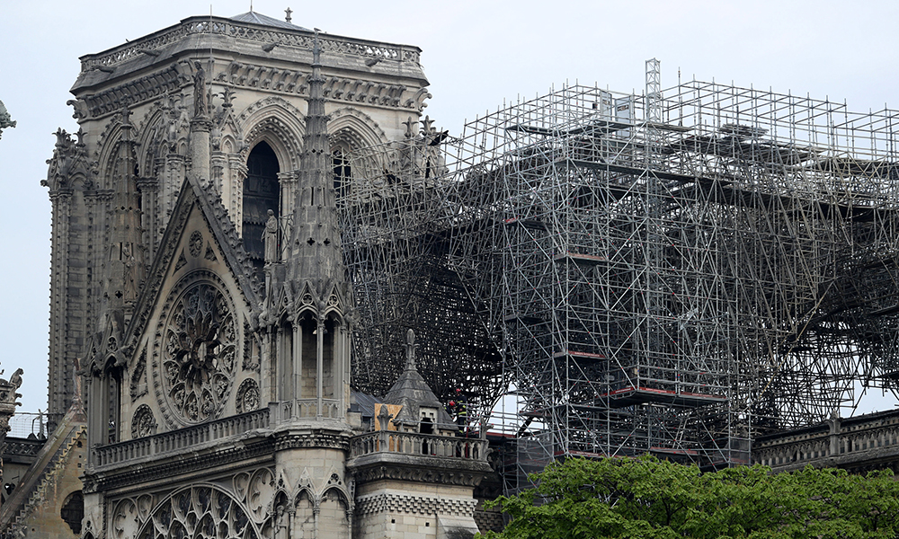 Zjarrfikësit kanë vazhduar që të hedhin ujë mbi rrënojat e shkrumbuara të “Notre Damet” të martën në mëngjes pasi që flakë të rrëmbyeshme e kapluan këtë katedrale gotike në zemër të Parisit, ndërkohë që hetuesit ende nuk e kanë përcaktuar shkakun e zjarrit.