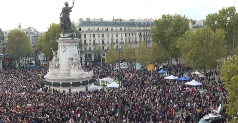 Përreth Francës po mbahen tubime njerëzish në mbështetje në Samuel Patyt, mësuesi i cili u vra pasi u tregoi nxënësve karikatura të Profetit Muhamed, gjatë një ligjërate.