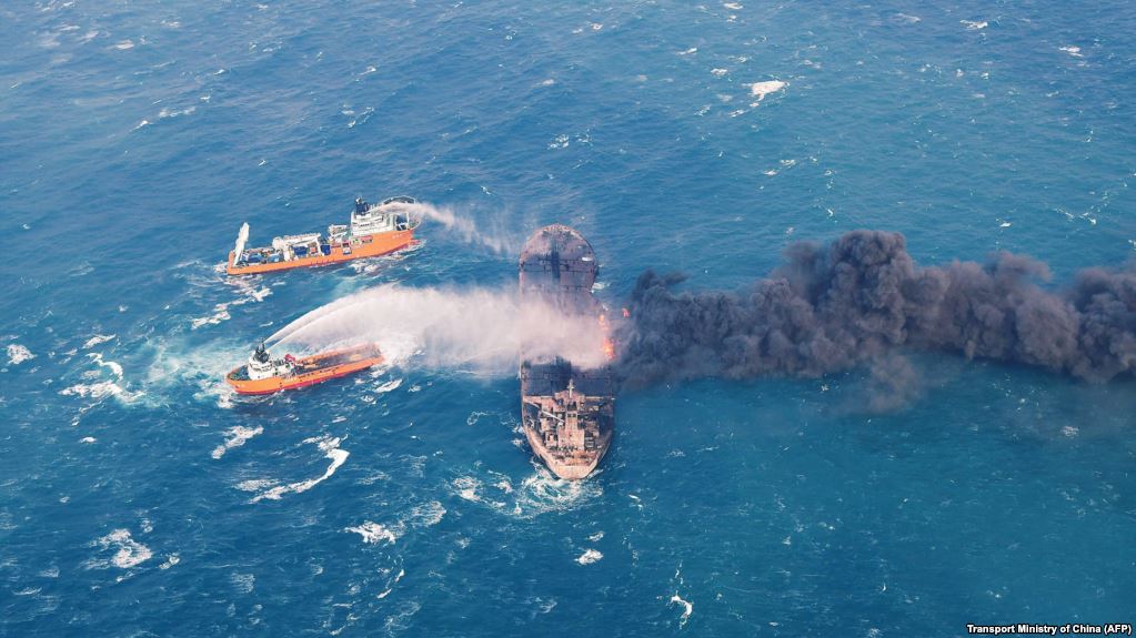 Anija Sanchi, e cila ishte pronë e National Iranian Tanker Co, ishte duke transportuar një sasi të madhe të lëndëve djegëse, duke përfshirë ato të lehta, të ndezshme dhe eksplozive drejt Koresë Jugore .