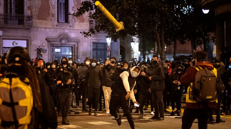 Gjatë të shtunës mbrëma, policia në Barcelonë është detyruar t’i ndjekë protestuesit pasi ata kishin hedhur shishe të xhamit në drejtim të tyre, i kanë vënë zjarrin një veture policie dhe kanë thyer dyqane e banka.
