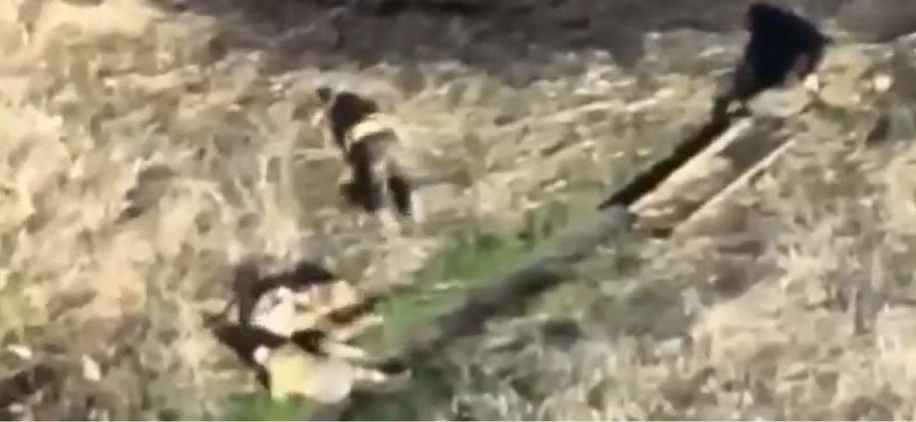Në pamjet e publikuara nga Shtabi i Ukrainës, shihen katër rusë që po bartnin me barela dy të plagosur, derisa në mes të rrugës qëllohen nga ajri. Njëri ia doli të vraponte nga vendngjarja, derisa të tjerët zvarrë tentuan të iknin.