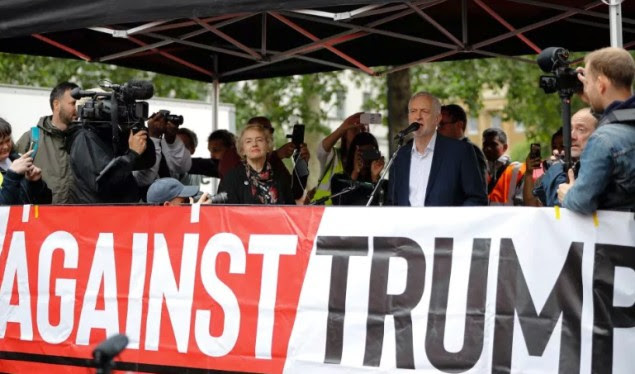 Corbyn, gjatë fjalimit para protestuesve në Londër, kritikoi trajtimin e refugjatëve nga Trump, si dhe sulmin e tij ndaj kryetarit të bashkisë së Londrës.