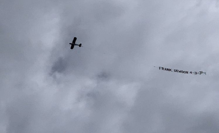 Gjatë stërvitjeve të shtunën, përfaqësuesja e Holandës ka qenë dëshmitare e një aeroplani që ka fluturuar mbi ta, me mesazhin për De Boerin – “Ndërroje taktikën në 4-3-3”.