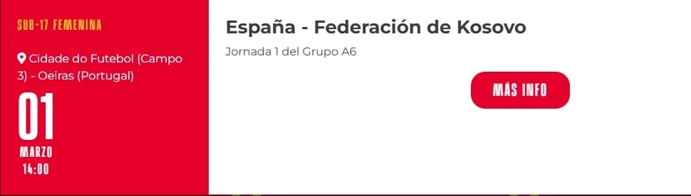 “Espana – Federacion de Kosovo”, shkruan në webin zyrtar të Federatës së Futbollit të Spanjës për ndeshjen e 1 marsit.
