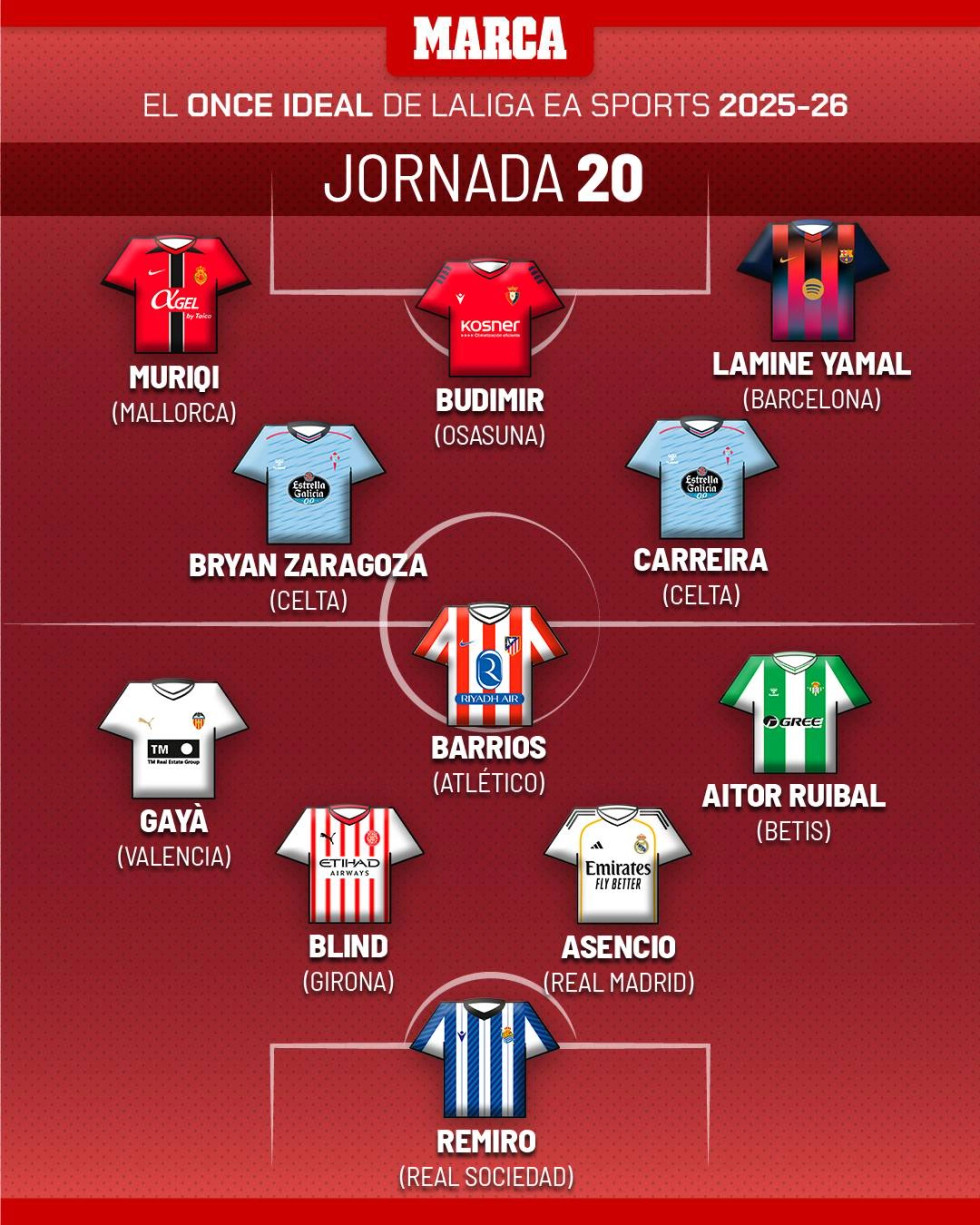 “Ndeshjet e xhiros së 20-të të La Ligas kanë përfunduar dhe ne kemi 11-shen ideale”, shkruan gazeta spanjolle në përshkrim.