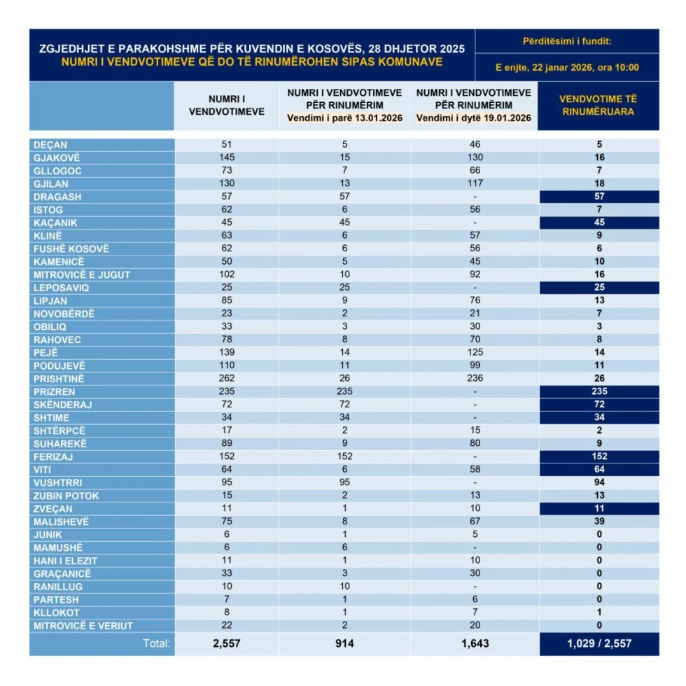 Rinumërohen 1.027 nga 2.557 vendvotime