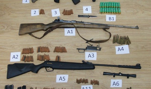 “Në shtëpinë e të dyshuarit 1- janë gjetur dhe konfiskuar 1- pushkë ‘M48’ kal.7.92 16- fishek dhe 3- gëzhoja të kalibrit të njëjtë, 1-pushkë ajrore ‘ Flloberg Strong’ dhe 20- diabola, 74- copë fishek të Ak 47, 2- karikator, 17- fishek të kal. 7.62 mm, 1- fishek 9x19mm dhe 15 copë fishek me gas të kal. 9x19mm. Kurse në shtëpinë e të dyshuarit 2- janë gjetur dhe konfiskuar 18- fishekë të armës së gjuetisë kal. 12mm”, thuhet në njoftim.
