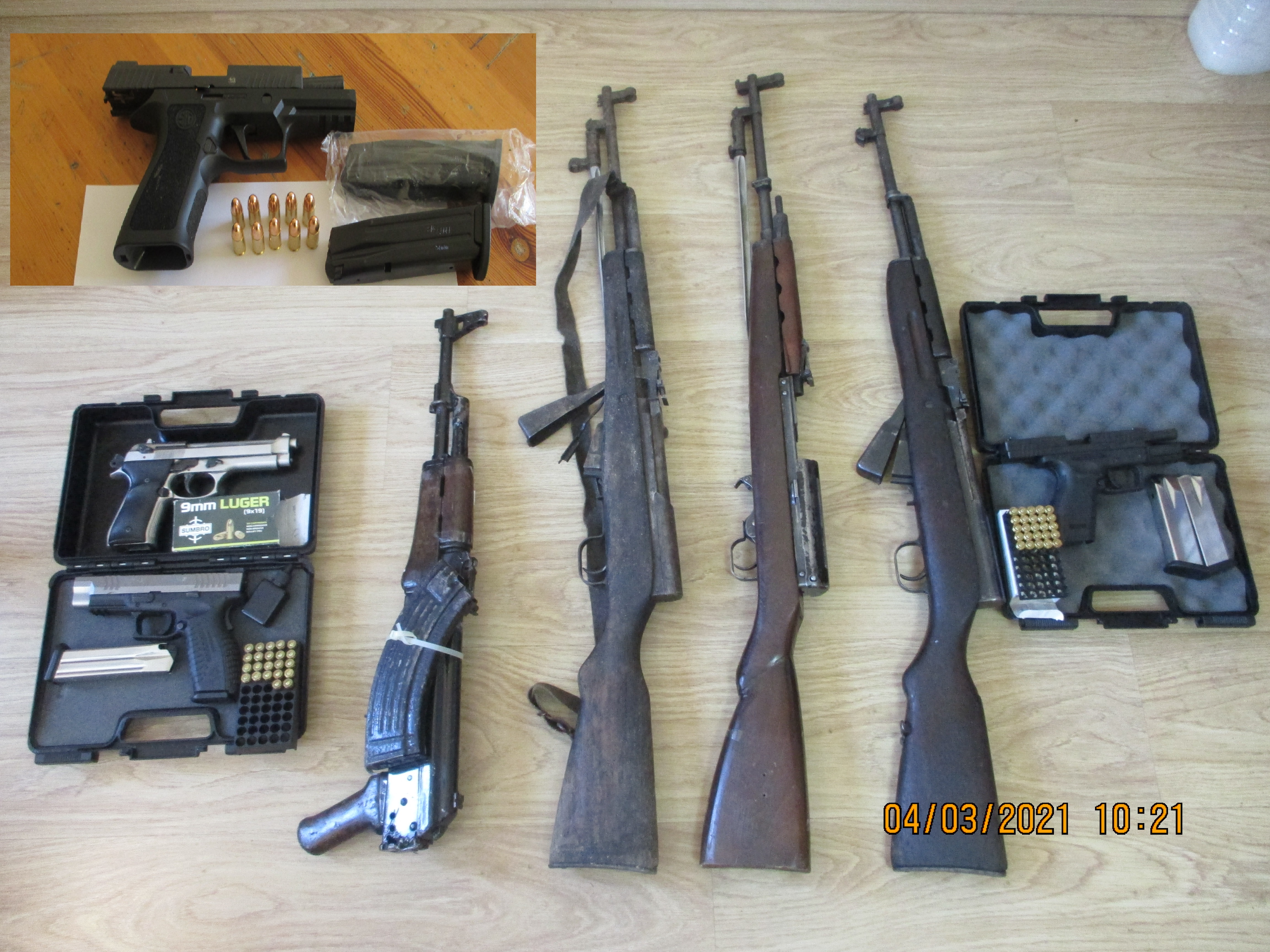 - Një (1) pistoletë e llojit ‘Sig Sauer’, dhjetë (10) fishekë kal. 9x19mm dhe dy (2) karikatorë.