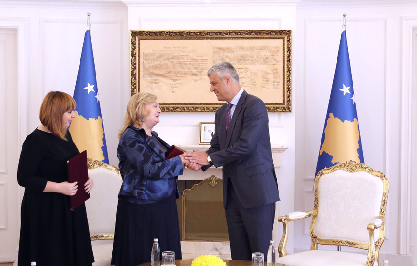 Presidenti i Republikës së Kosovës, Hashim Thaçi, sot e ka dekoruar shkrimtaren e njohur Helena Kadare me Medaljen Presidenciale të Meritave.