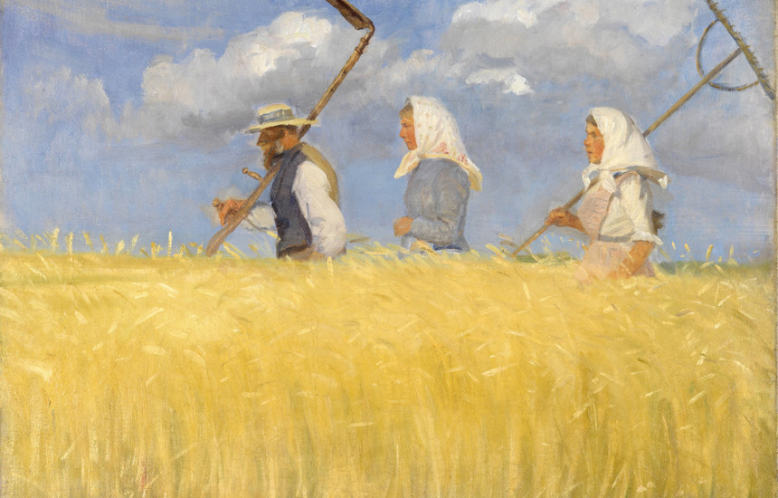 Vepra vaj në pëlhurë “Harvesters” shfaq një burrë dhe dy gra në rrugën e tyre për punës e kositjes në një fushë rreth Skagen. Fshati në pjesën veriore të Danimarkës ishte destinacion veror për shumë artistë skandinavë që realizuan pikturat e tyre që njihen si “Skagen Painters”. Ani pse artistët kishin stile të ndryshme, qasja në pikturë ishte gati e ngjashme. Ata pikturonin skena nga takimet e tyre dhe hapësirat që i rrethonte. Në mesin e tyre ishte edhe Anna Ancher, që konsiderohet një nga artistet me të mira të artit pamor në Danimarkë.