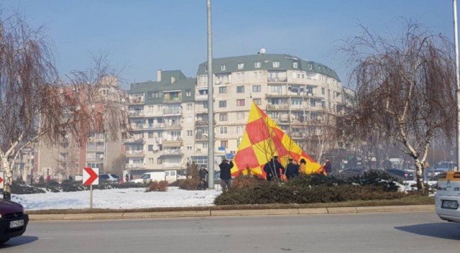 Policia e Kosovës, në orët e para të së shtunës, e kishte dërguar artistin Driton Selmani në stacionin policor, pasi ky i fundit kishte angazhuar një kompani për ta zëvendësuar flamurin kombëtar të vendosur në hyrje të Prishtinës, me një tjetër flamur me ngjyra kuq e verdh, veprim ky që do t’i kushtojë autorit.