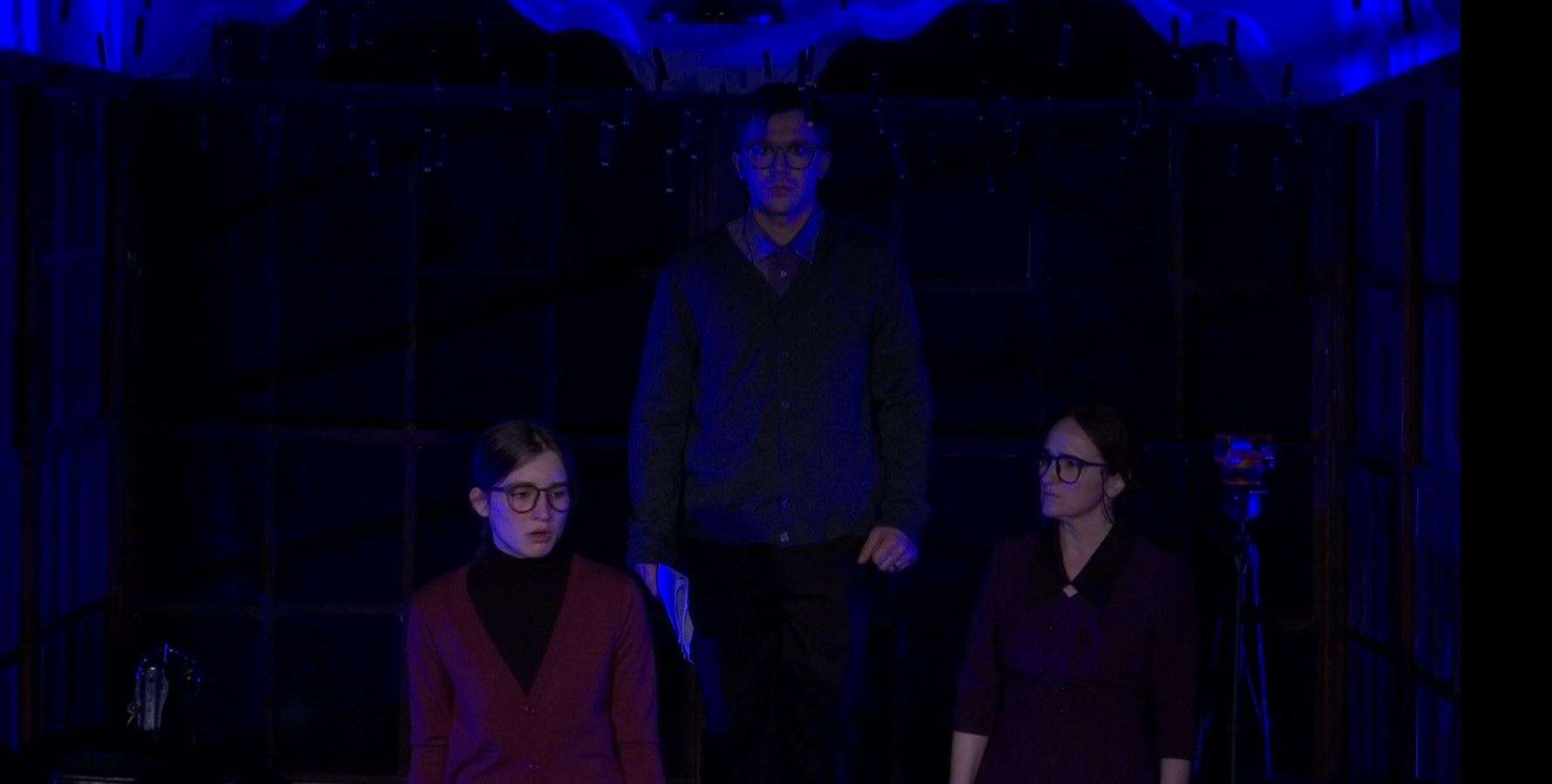 Teksa dritat me ngjyra të ndryshme bien mbi dritaret e tavanin e drunjtë, bisedat midis tre familjarëve tregojnë një imazh të zakonshëm familjar. Ambienti merr pamjen e një salloni shtëpie. Temat e zakonshme përsëriten, por personazhet s’ka gjë që i nxjerr prej zymtësisë që s’ia dalin t’i japin emër edhe kur përpiqen me gjithë forcën pas bisedave të zhurmshme.